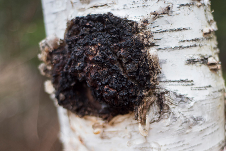 Undeniably my favourite winter find is chaga, found mostly on birch trees. The blackened outer edges are great for brewing teas and a thumbnail sized piece will produce at least five cups. Simmer for 30 minutes with a cinnamon stick. Chaga should only be harvested once nightly temperatures are consistently below freezing — this ensures the benefits of the plant are more potent. Take only as much as you need, as this parasitic fungus is very slow growing.