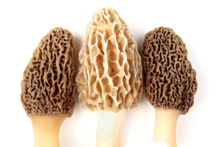 After a snow-heavy winter, check recently cleared forests for morel mushrooms. These elusive fungi thrive in rich new-growth areas. Elm, ash, and apple stands are also good places to look in mature forests. Morels should look pitted, while false morels will resemble a brain-like mushy texture.