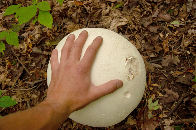 The unmistakable puffball mushroom is a fall favourite. In the wild, this mushroom can be found in rich soil areas, think lots of nutrients in soil, possibly new growth areas. Puffball mushrooms grow straight from the ground with little to no base on them, and they should be pure white inside. Cut down the middle to make sure there are no gills or stems hiding in the mass.