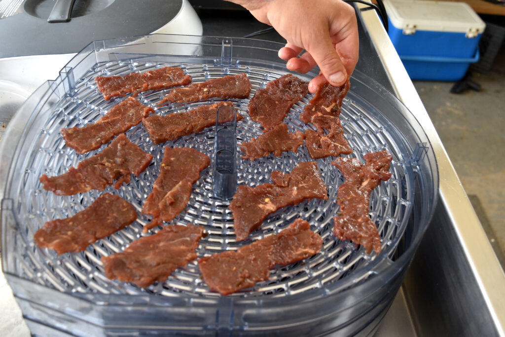 I use a dehydrator for making jerky as I prefer a smokeless flavour (although smoked jerky is also delicious!). I use a Cabela’s six-tray digital dehydrator. It’s easy to use, with touch-button settings for timer and temperature. Just layer your marinated meat and boom, you’ve got jerky in the morning.