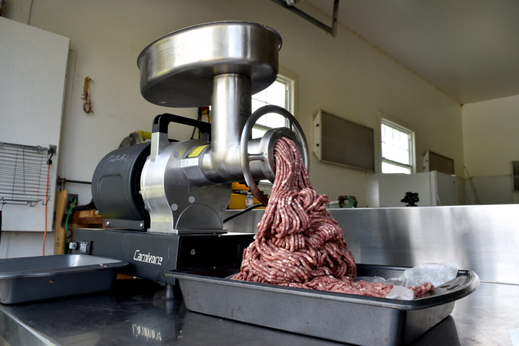 I use a Cabela’s ¾-hp Carnivore grinder to make burgers and to stuff sausage and pepperettes. This reliable unit has great power but is heavy. I have the much lighter Weston #8 grinder and sausage maker as a backup and for easier travel. Both units come with a variety of sausage-stuffing attachments, including larger ones I use for summer sausage, to small skinny ones for pepperettes.