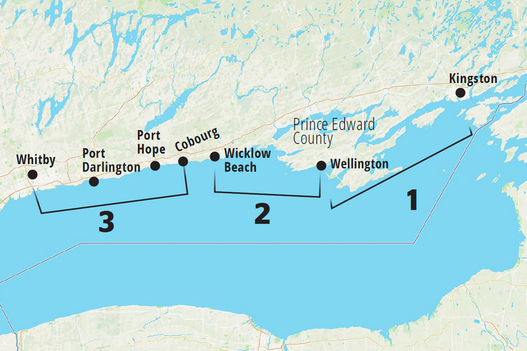 Anglers are drawn to this section of shoreline due in large part to the concentration of underwater structure that attracts fish. The Prince Edward County headland extends out into Lake Ontario, forming islands and shoals.
